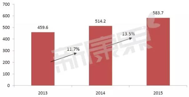 2013-2015年我國(guó)降壓藥市場(chǎng)規(guī)模(單位:億元)